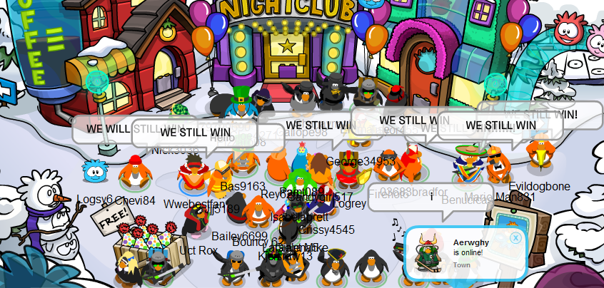 Anyways, the battle went on for over 1 hour due to NW not having the guts to surrender, even while they had 3 on Club Penguin and we had over 15 at the end, they still didn’t so we just logged off because it was clear of the victors.
