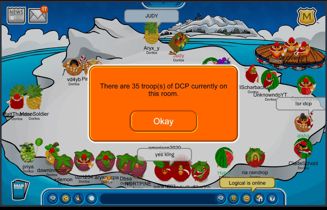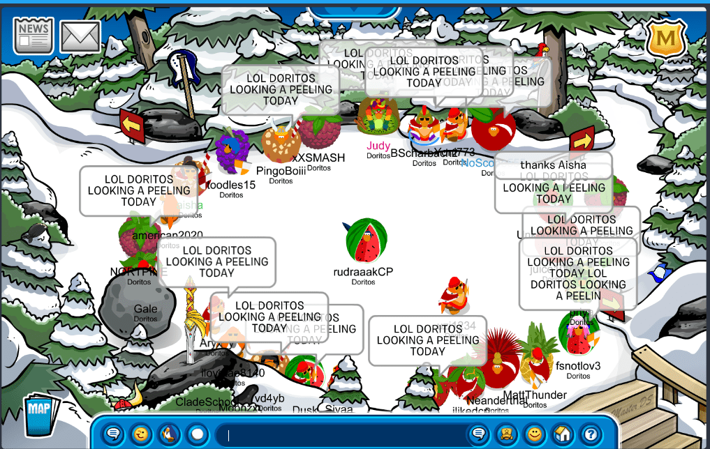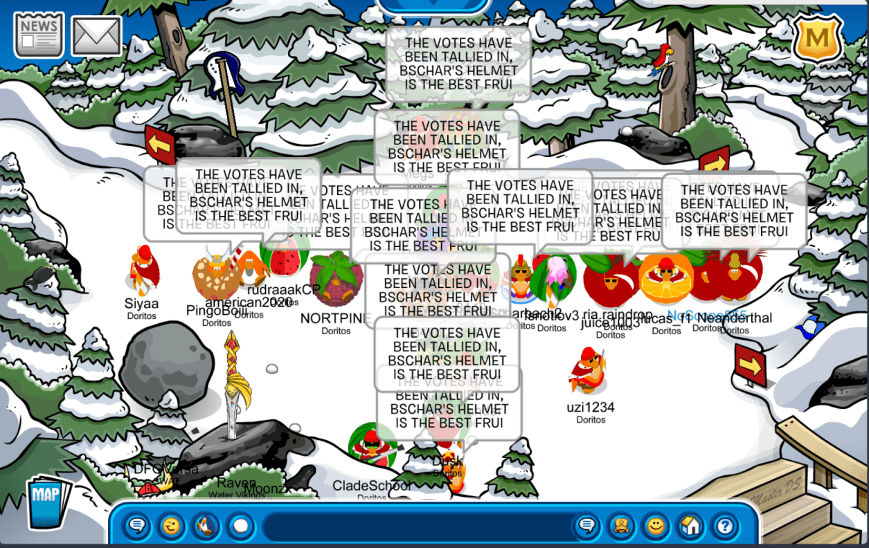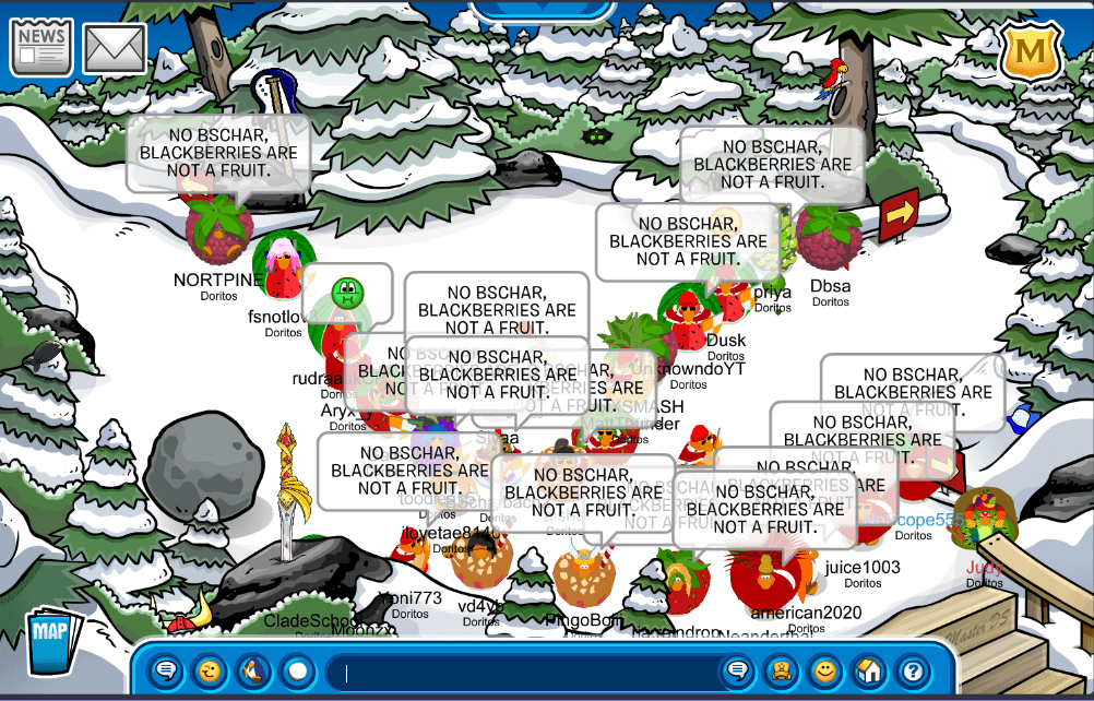 Hey Doritos! Today, we logged onto Battleground to practice forms in tactics in a fruity manner! We had a great time stomping onto the battlefield in fruit-themed costumes, and we truly looked particularly appealing!